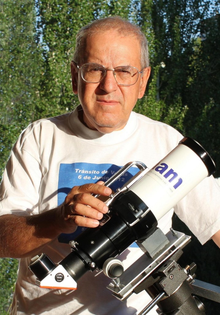 Nicolás Ortego es astrónomo de larga trayectoria en la divulgación astronómica, especialmente en el estudio del Sol y sus fenómenos asociados. Forma parte activa de la Agrupación Astronómica de Madrid, donde colabora en el grupo de Heliofísica, coordina labores de astrofotografía y participa en la revista Neomenia.